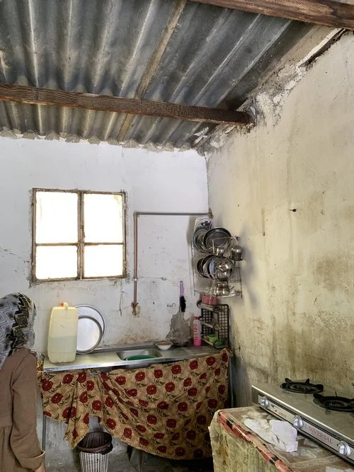 Um and Abu Mohammed is an elderly couple who lives together with their son and their family. While the house is clean and tidy, their kitchen suffers from chemical smells due to the roof being made out of asbestos sheets, known to be unfit as a building material due to their cancerous properties. We would love to help this family by changing the roof in their kitchen.