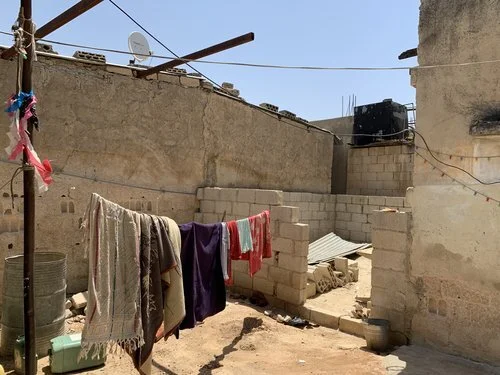 Um Majd is the first wife in a polygamous marriage and a mother of three daughters. Her husband works as a construction worker with very sporadic income. Um Majd lives in a very simple one room house with a small courtyard that connects to their kitchen and bathroom. Several years ago, they started working on building an additional room, but money ran out and the work that has been done already will need to be redone. We are helping Um Majd complete this second room, which includes installing a simple but functional roof made of zinc sheets.